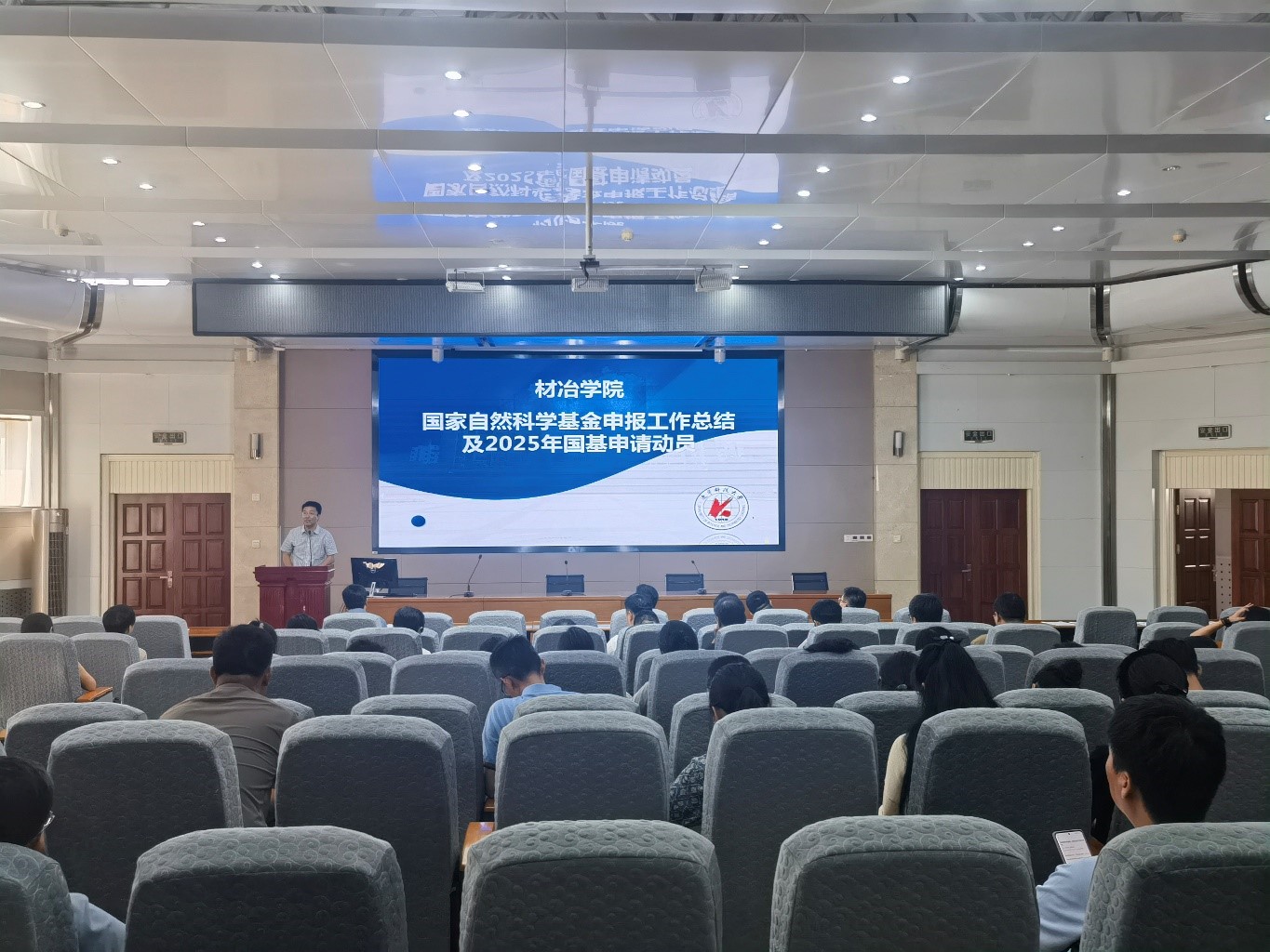 8月28日,材料与冶金学院在图书馆报告厅召开国家自然科学基金2024年工作总结及2025年申报动员会,进一步统一思想、凝聚共识,不断提高学院国家自然科学基金项目获批数量,促进学院高质量发展。学院副院长(主持行政工作)艾新港教授主持会议。