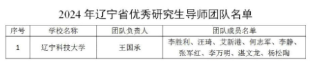 近日,辽宁省教育厅发布《关于公布2024年辽宁省优秀研究生导师、优秀研究生导师团队名单的通知》,材料与冶金学院王国承教授团队获评2024年辽宁省优秀研究生导师团队,这是材料与冶金学院第一个,同时也是米兰电竞(中国)官方网站第二个获此奖项的团队。
