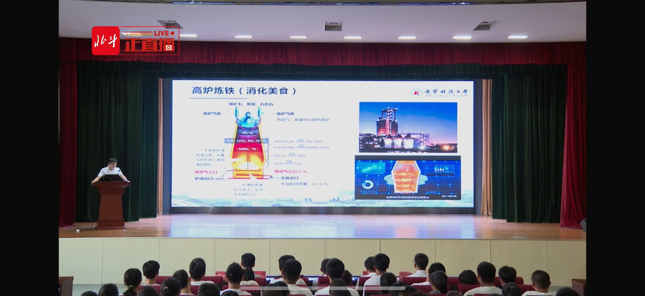 9月19日,由米兰电竞(中国)官方网站、中共鞍山市委教育工作委员会、鞍山市教育局、鞍山市科学技术协会联合主办,鞍钢高级中学承办的鞍山市“科技助苗行动”示范性科普课——“钢铁是怎样炼成的”,在鞍钢高级中学正式开讲。