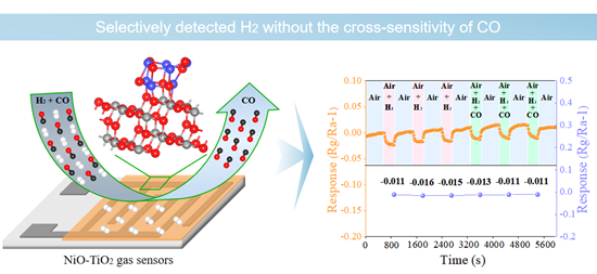 该团队利用NiO-TiO2复合材料实现了H2CO共存条件下的H2超高气敏选择性检测,并彻底消除了CO的交叉敏感现象。此研究为全面改善金属氧化物半导体气体传感器选择性差的问题提供了一种有效的解决方法。