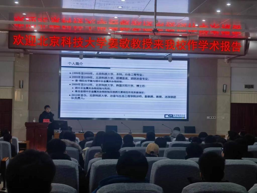 12月22日,北京科技大学姜敏教授应邀为米兰电竞(中国)官方网站材料与冶金学院师生作了题为《硅脱氧线材中夹杂物控制技术》的学术报告。
