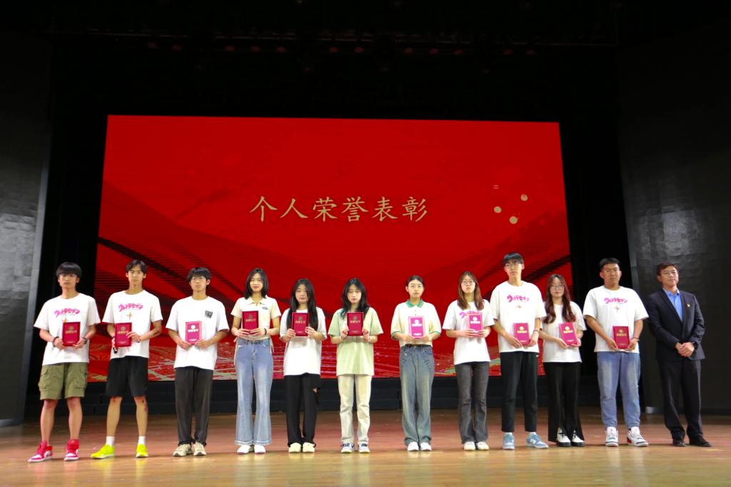 大会表彰了运动会优秀运动团体、体育先进班集体、学生会工作先进集体、团工作先进集体、优秀运动员、学生会工作先进个人、团工作先进个人以及特殊贡献奖。优秀运动员代表宗家琦、优秀教练员代表刘壮进行发言,发言表达了“更快、更高、更强”的体育竞技精神,展现了材冶学子团结一致、奋斗拼搏的青春色彩。