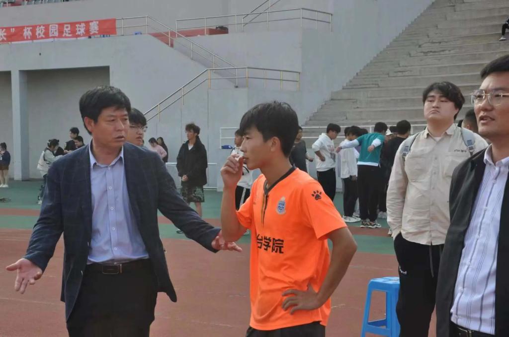 在一系列比赛中,材冶学院足球队表现出了出色的团队合作和战术布置,多次制造出有威胁的进攻。比赛结束后,球员们在场上拥抱庆祝,欢呼与掌声回荡在整个体育场。材冶学院党委书记刘彦国同运动员们共同合影留念。这一胜利不仅仅是对材冶学院球队实力的肯定,更是对他们日常辛勤训练的最好回报。