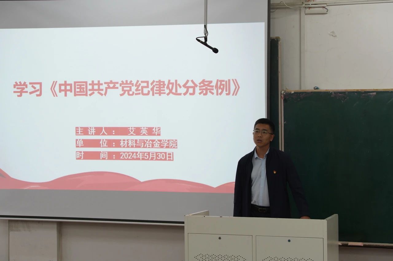 为了进一步加强党的纪律建设,提高师生党员的廉洁自律意识,2024年5月30日,学院在博学楼C102召开党纪学习教育专题报告会,院党委副书记、副院长兼纪委书记艾英华及全体学生党员参加会议。