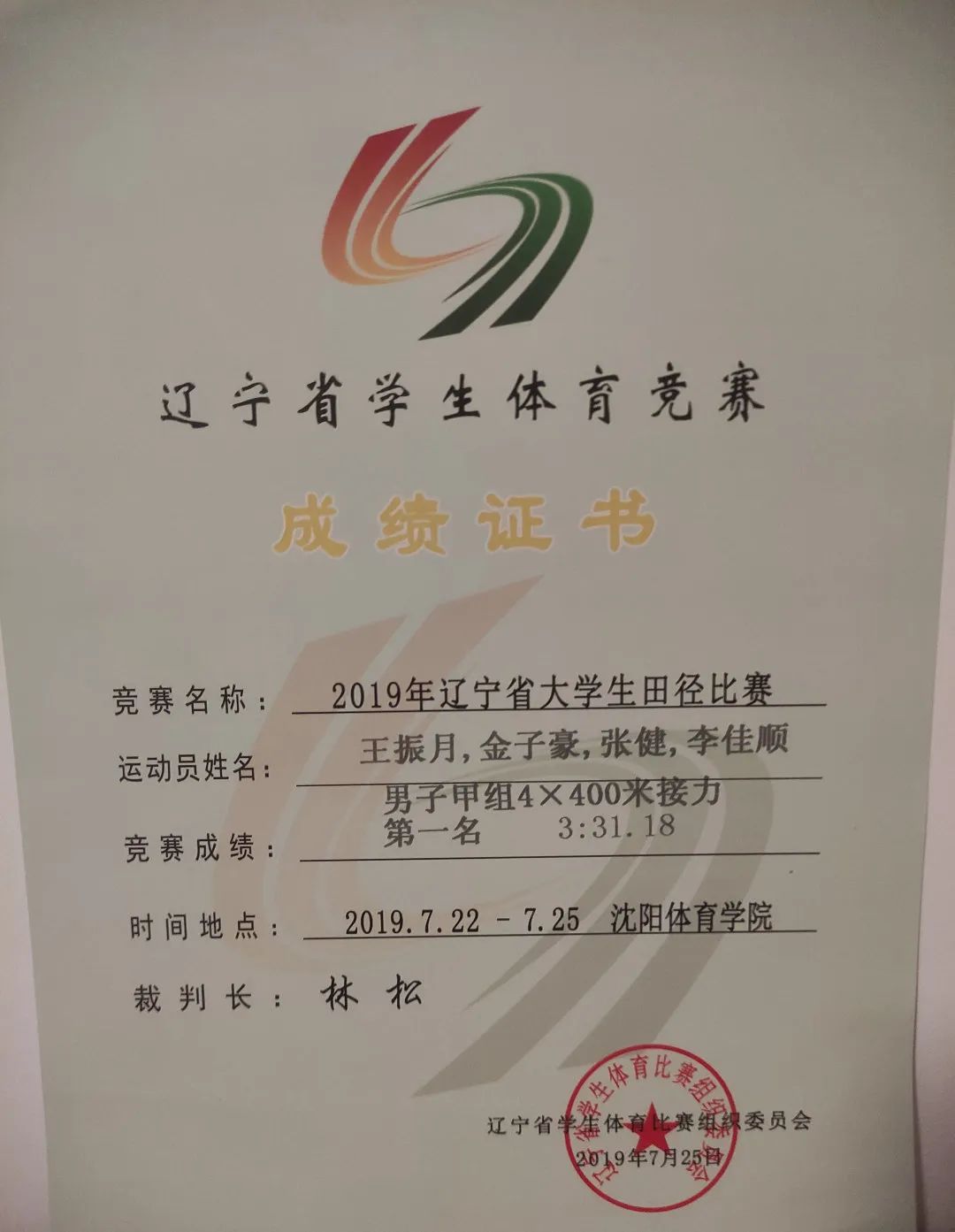 2023年:辽宁省大学生运动会4x4第二名,4x1第三第三名,400米栏第三名,110米栏第八名