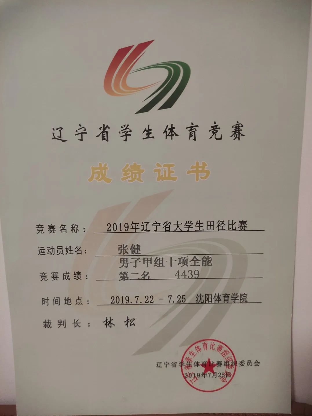 2019年:辽宁省大学生运动会十项全能第二 4x4第一