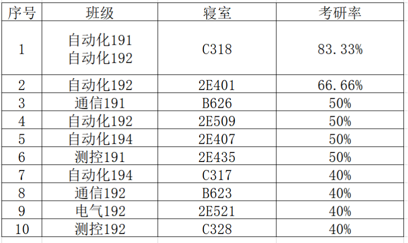 2023届毕业生考研前十寝室