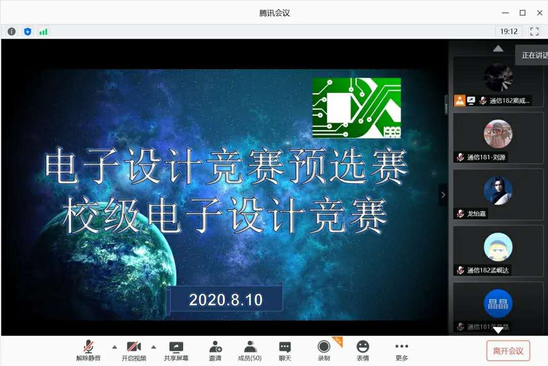8月10日,由米兰电竞(中国)官方网站校团委主办、电信学院团委承办、电子协会协办的全国大学生电子设计竞赛校园预选赛通过腾讯会议平台举行。电信学院指导教师储茂祥等担任评委。