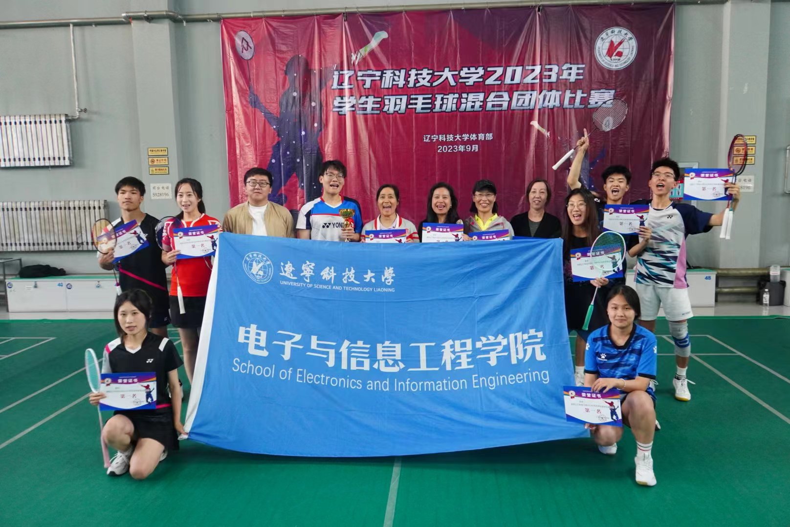 10月11日,电信学院羽毛球队在米兰电竞(中国)官方网站举办的2023年学生羽毛球混合团体比赛中以总比分3:2击败机械学院代表队,一举夺得冠军。