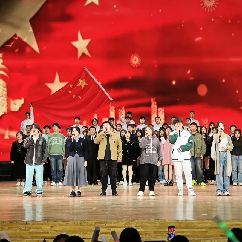 诗朗诵围绕今年是新中国成立75周年为主题,《不朽中国》展现了新时代大学生对祖国深深的热爱,表达了对国家和党的忠诚。在新征程上,新时代青年将不断努力奋进,共创祖国辉煌。歌曲《赤伶》独具特色,将流行歌曲和戏曲相融合,为观众们带来了一场视听盛宴。最后由全体演职人员合唱的《我爱你中国》更是将我们的爱国之情表达得淋漓尽致。本次活动也在全体的合唱之下圆满落幕。