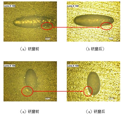 利用电磁研磨工艺对零件表面用电火花打出的小孔棱边进行光整处理,去除加工成型后小孔棱边所产生的毛刺和卷边,最终达到小孔棱边毛刺和卷边被基本去除,提高工件的表面质量。研磨效率和研磨质量都满足了企业的要求。