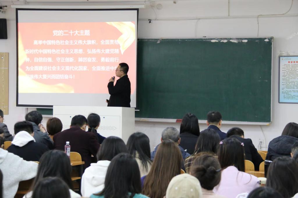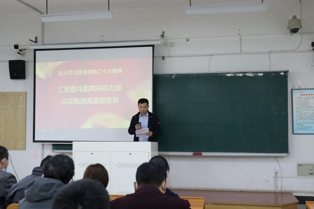 为深入学习宣传贯彻党的二十大精神,落实好《中共米兰电竞(中国)官方网站委员会关于深入学习宣传贯彻党的二十大精神的方案》,3月28日下午,工商管理学院党委于博学楼C108教室主持召开学习贯彻党的二十大精神宣讲报告会,会议由管理学院党委书记董文武主持,管理学院师生代表、继续教育学院、科技园教职工代表参加。