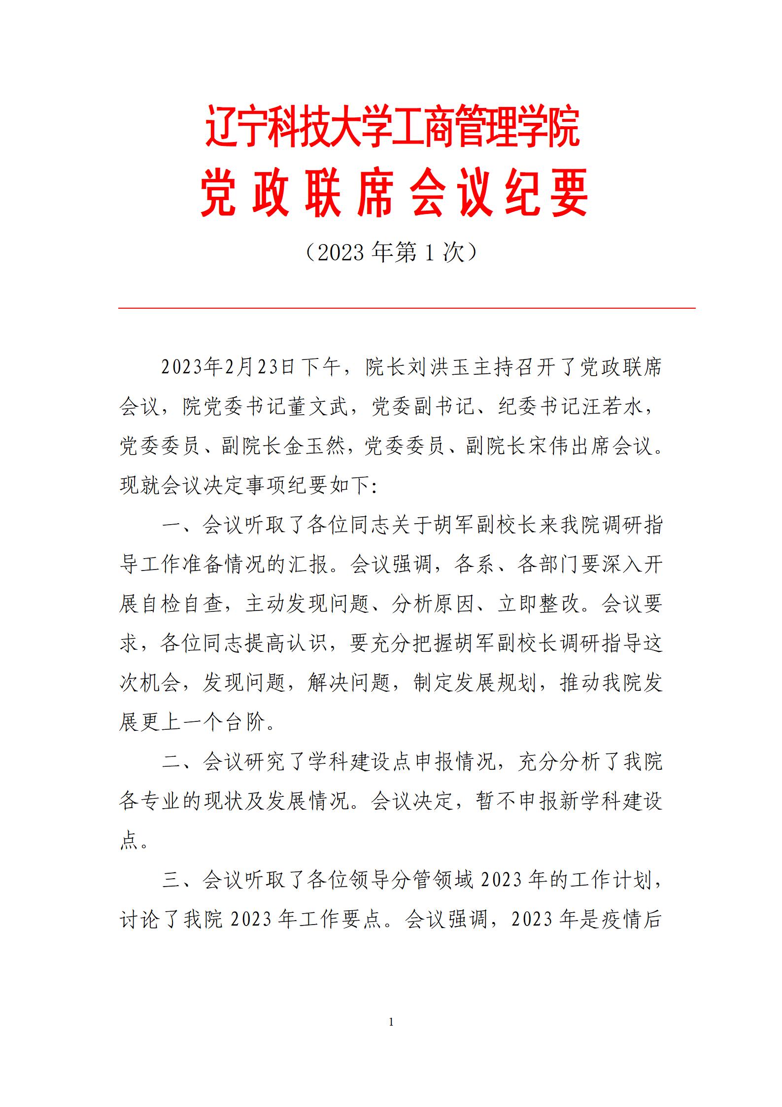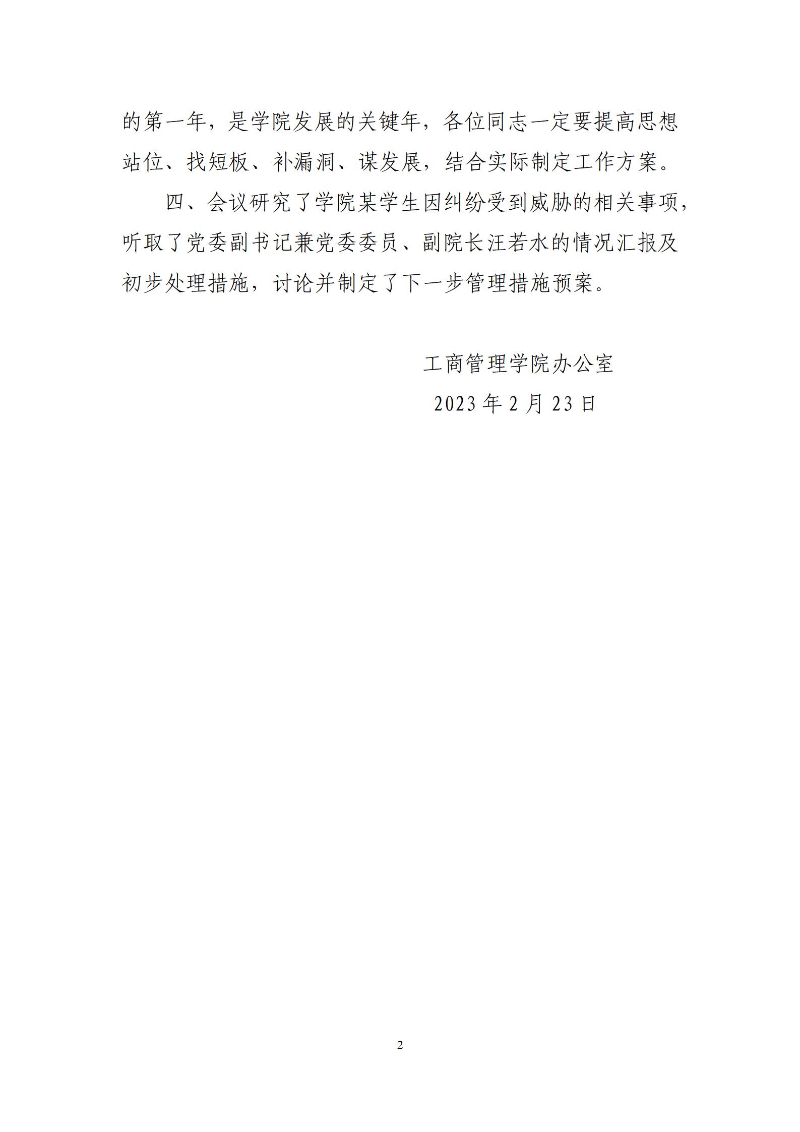 米兰电竞(中国)官方网站工商管理学院党政联席会议纪要(2023年第1次)
