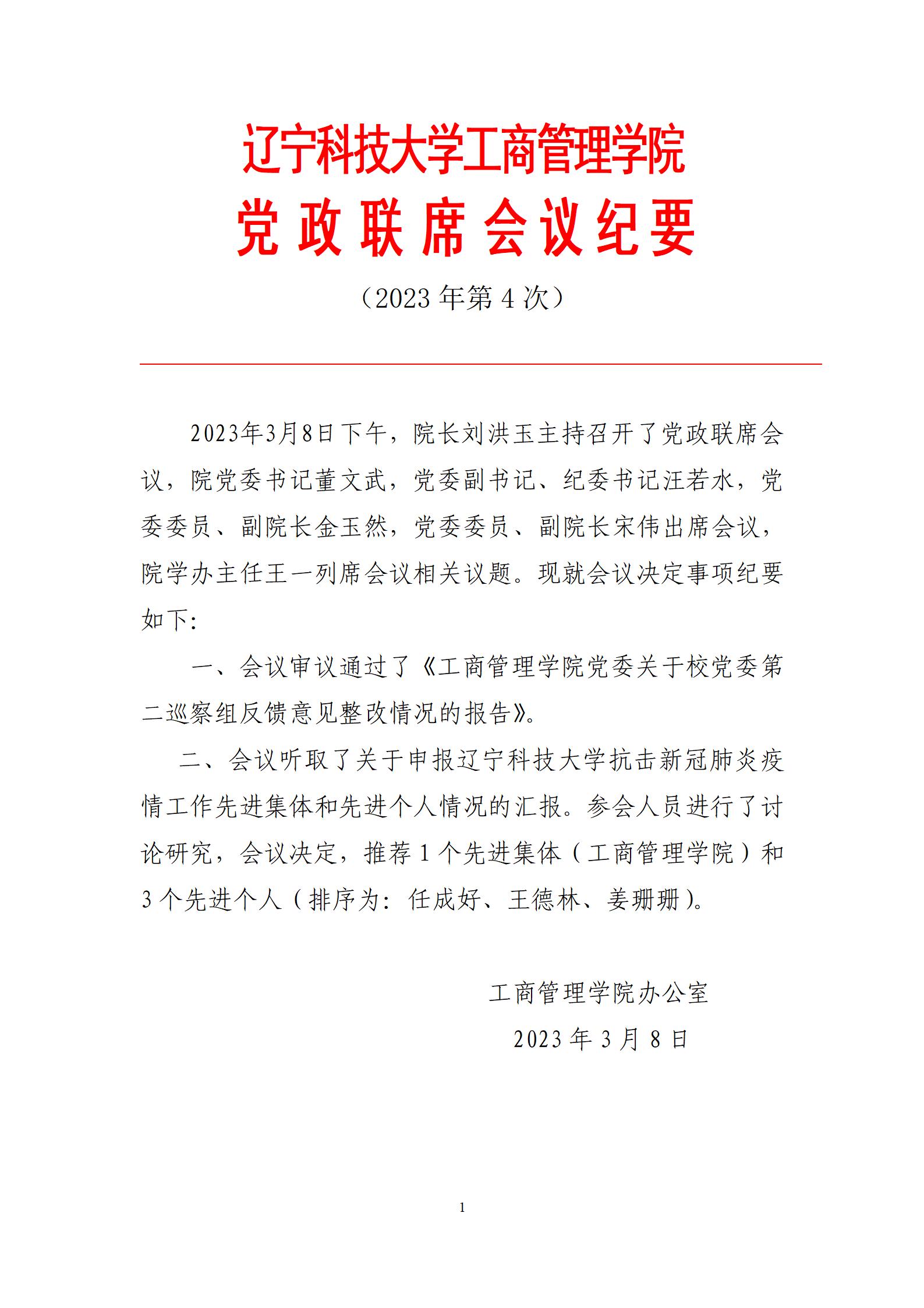 米兰电竞(中国)官方网站工商管理学院党政联席会议纪要(2023年第4次)