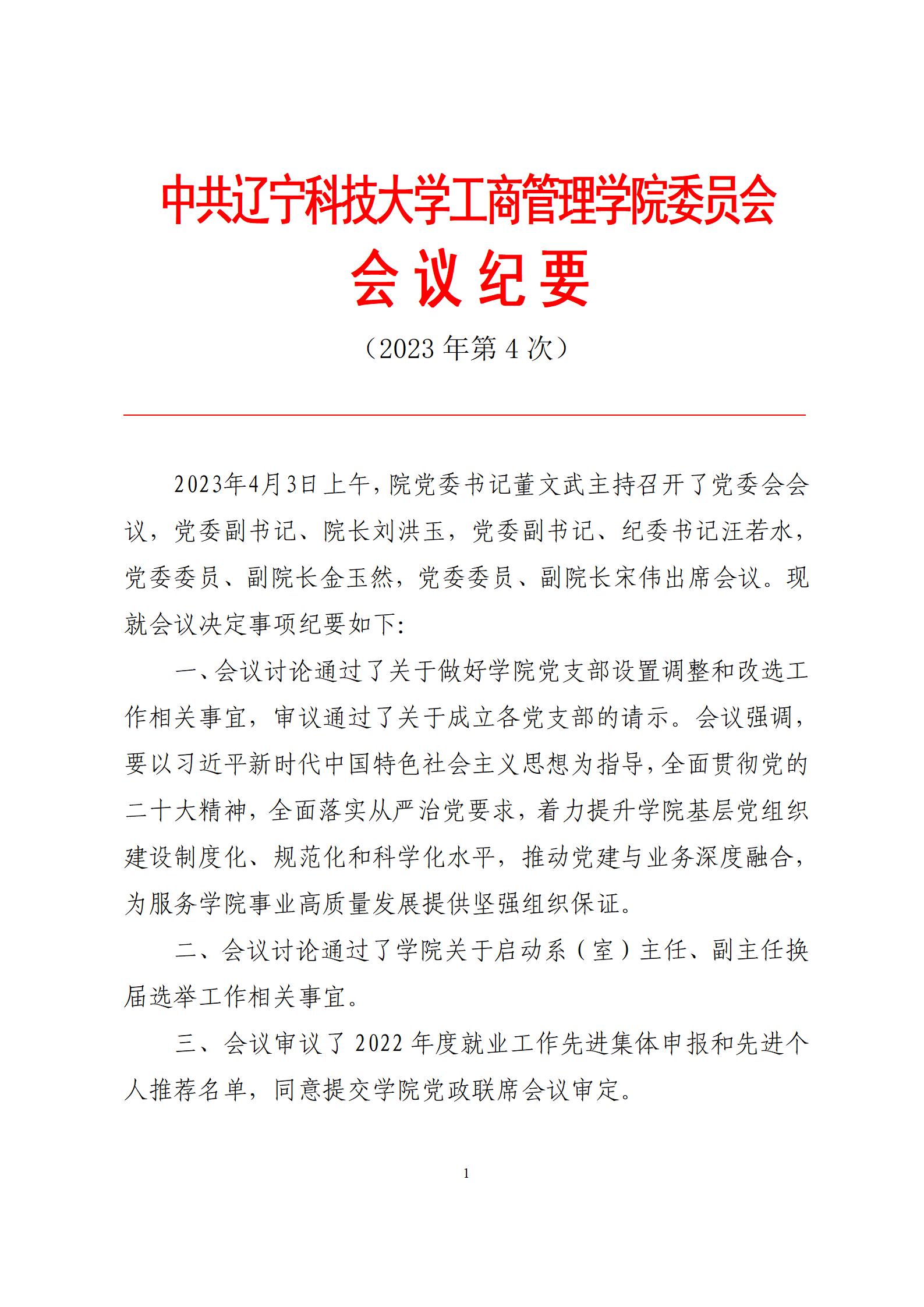 中共米兰电竞(中国)官方网站工商管理学院委员会会议纪要(2023年第4次)