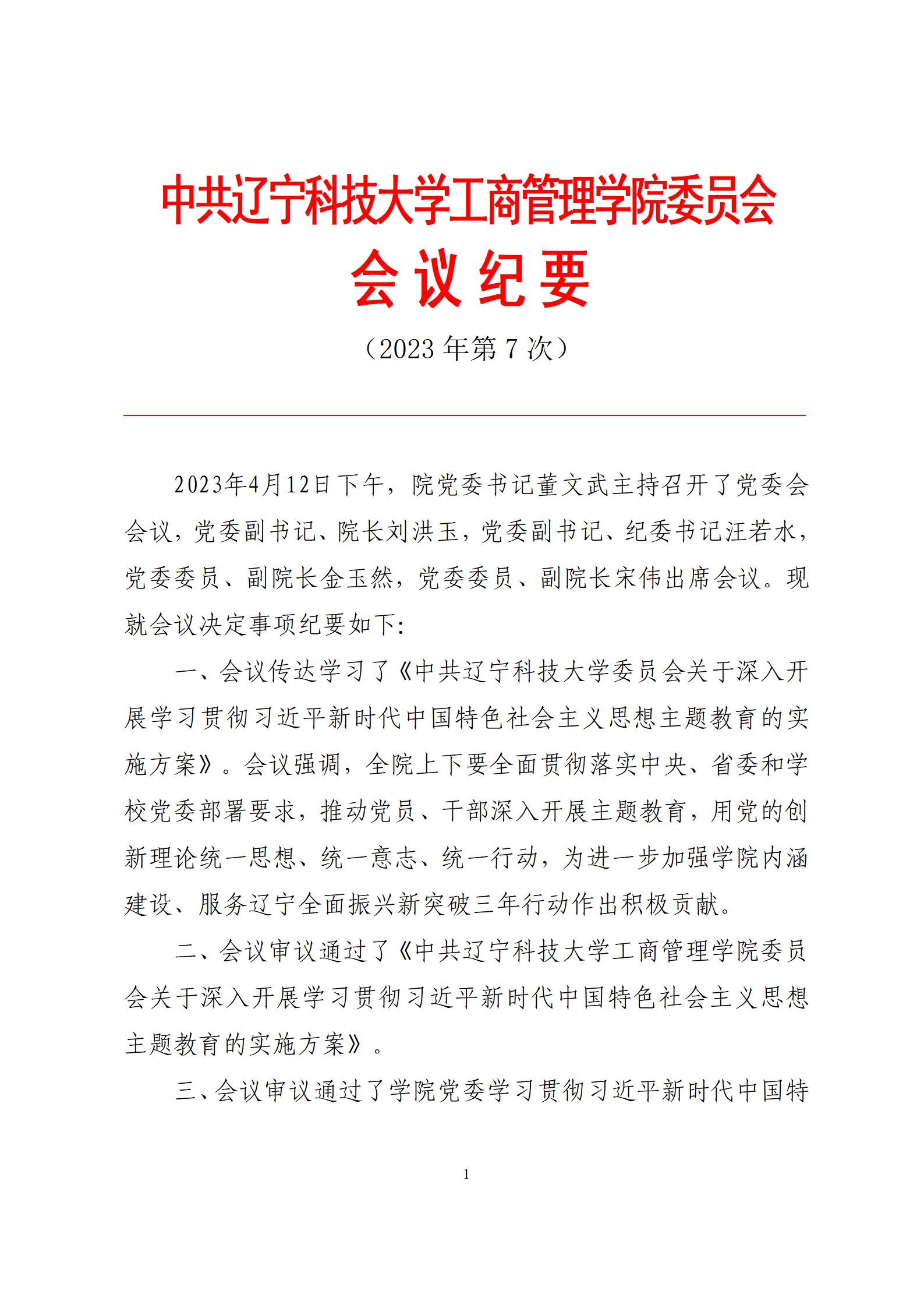 中共米兰电竞(中国)官方网站工商管理学院委员会会议纪要(2023年第7次)