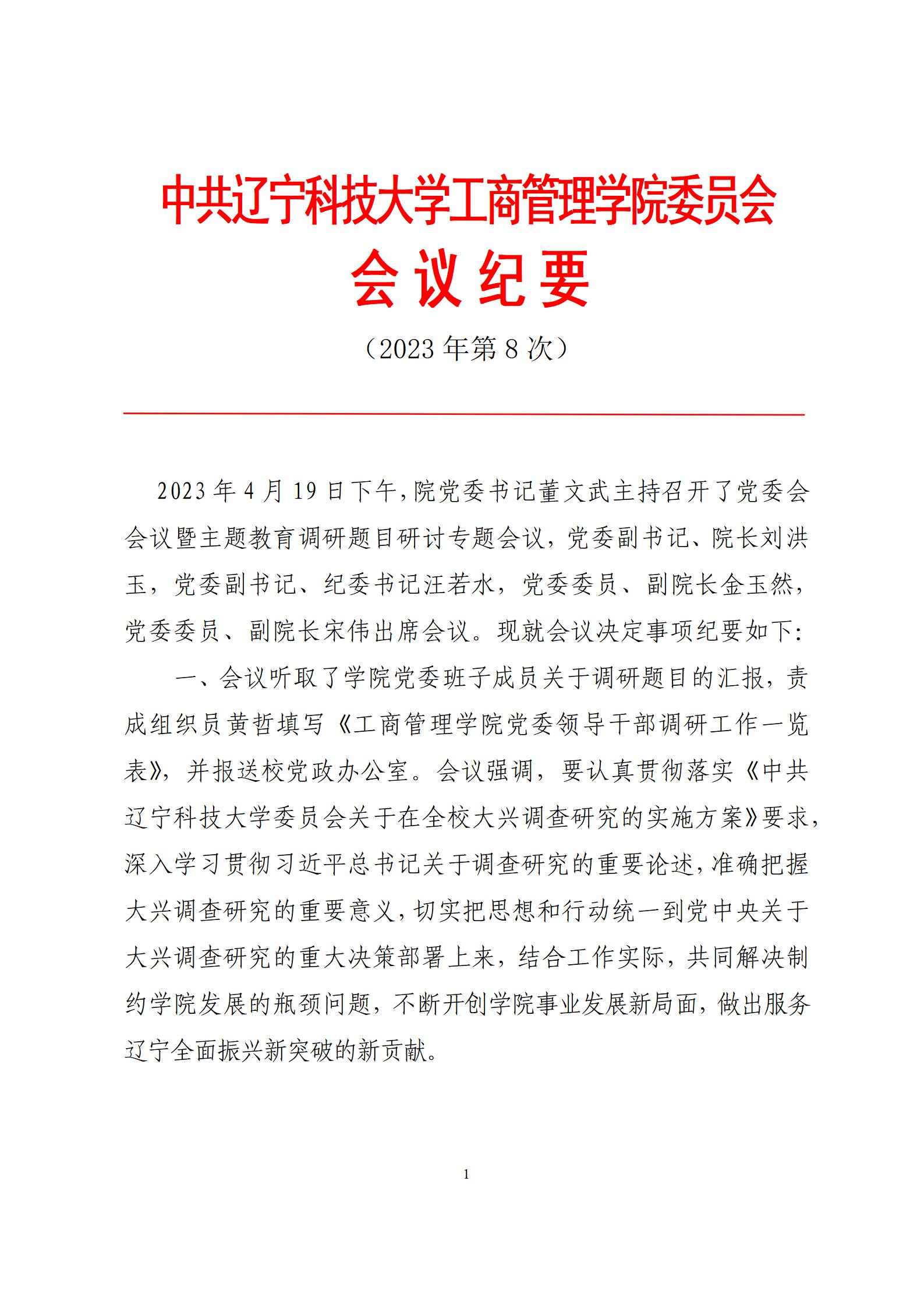 中共米兰电竞(中国)官方网站工商管理学院委员会会议纪要(2023年第8次)