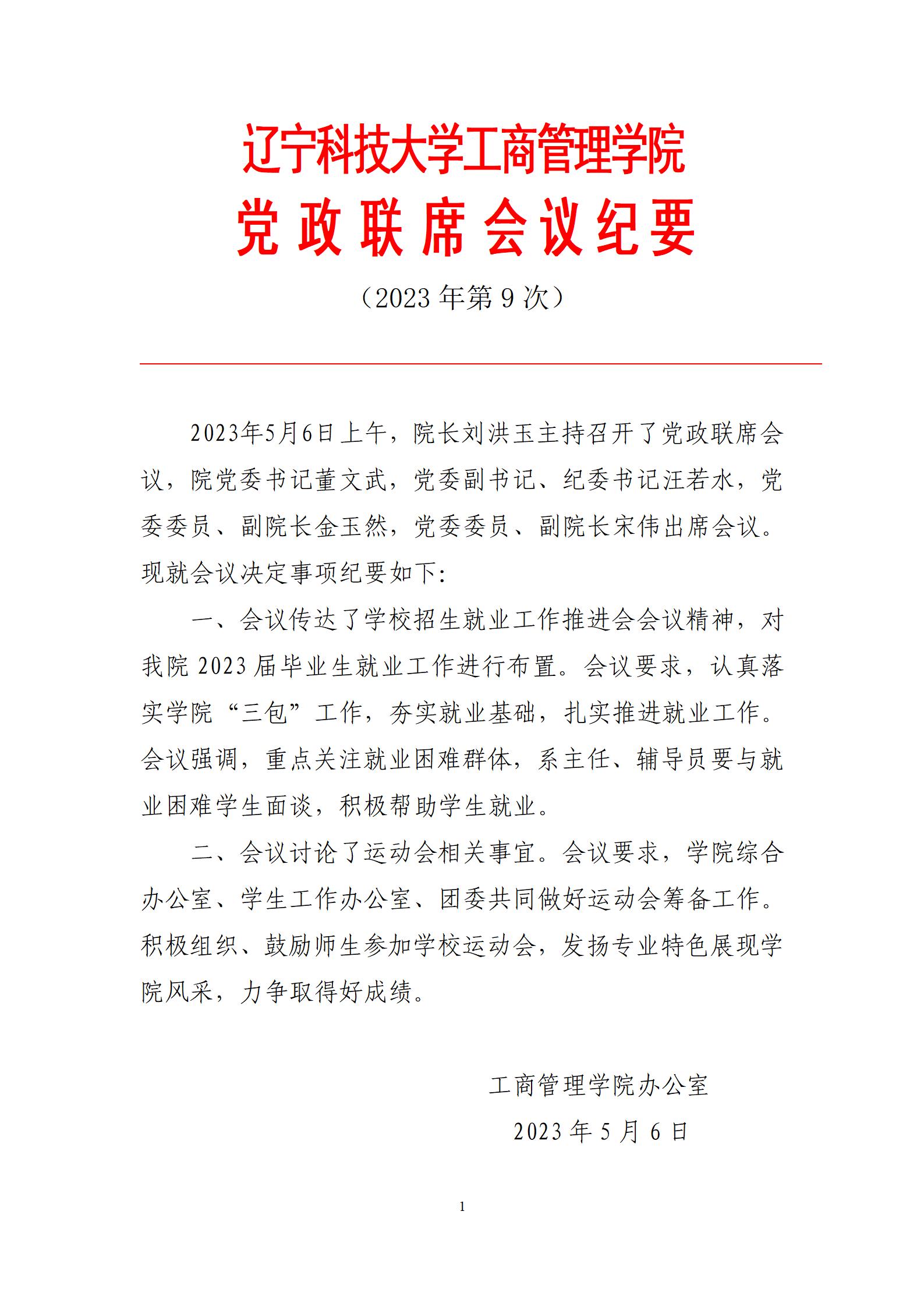 米兰电竞(中国)官方网站工商管理学院党政联席会议纪要(2023年第9次)