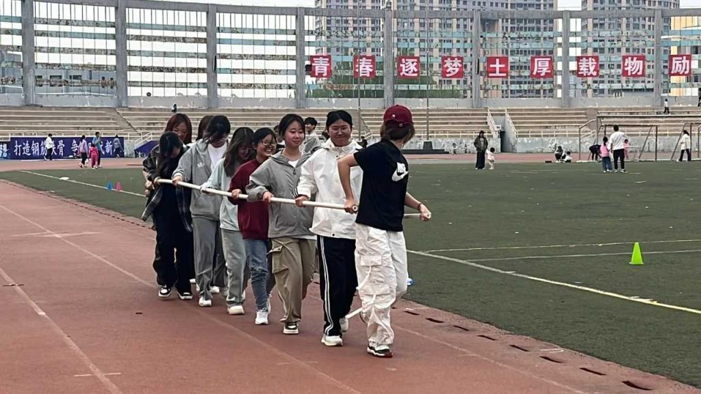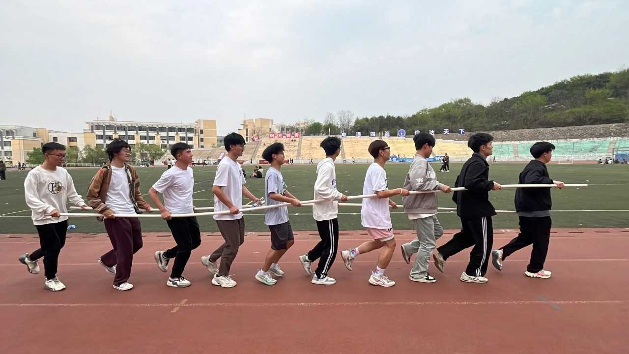 火车跑动,十人并肩,步伐一致,默契配合。速度飙升,激情四溢,长杆连接,信任坚定。赛道上,他们如一道闪电,挑战自我,超越极限,展现出勇往直前的精神风貌。