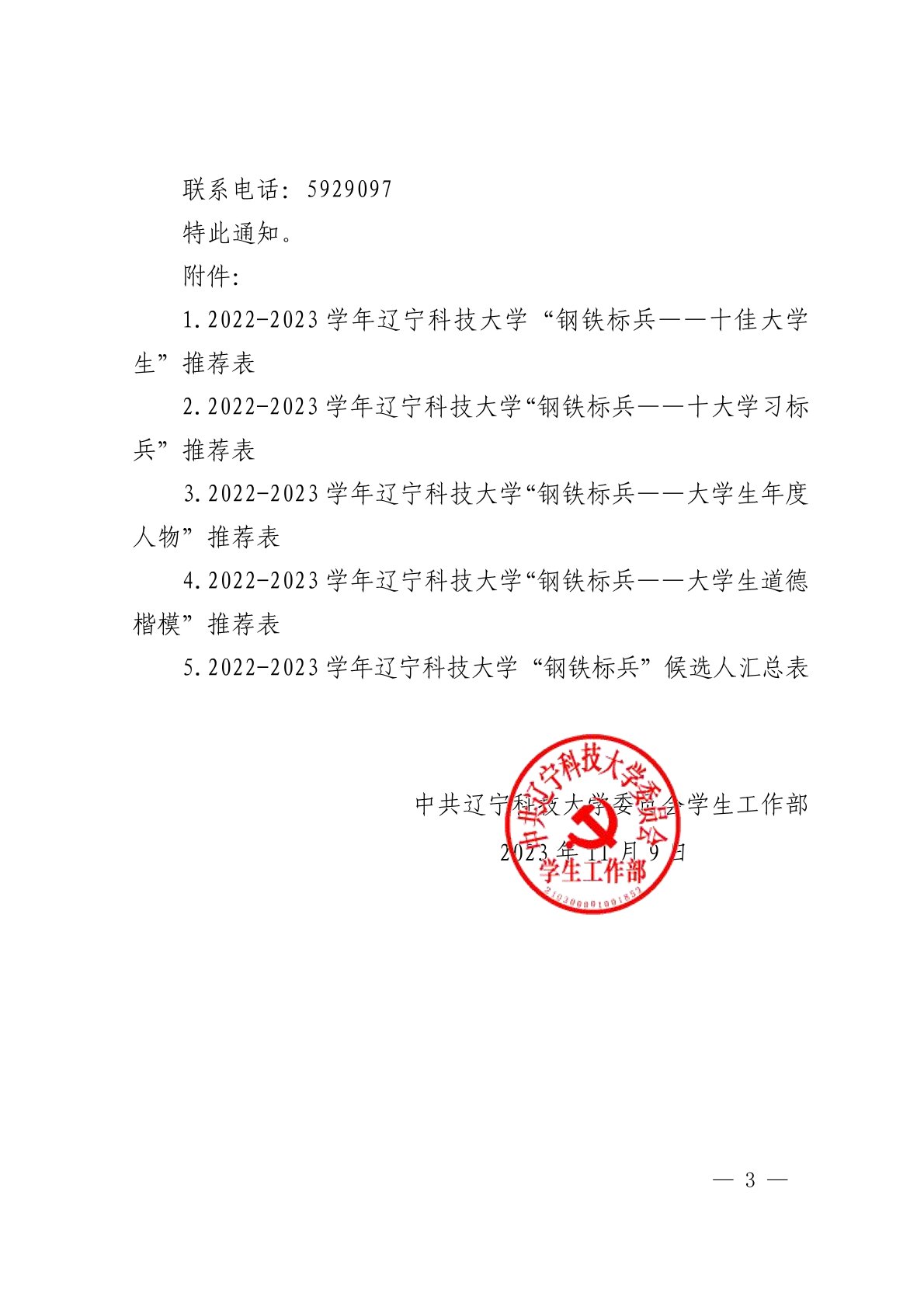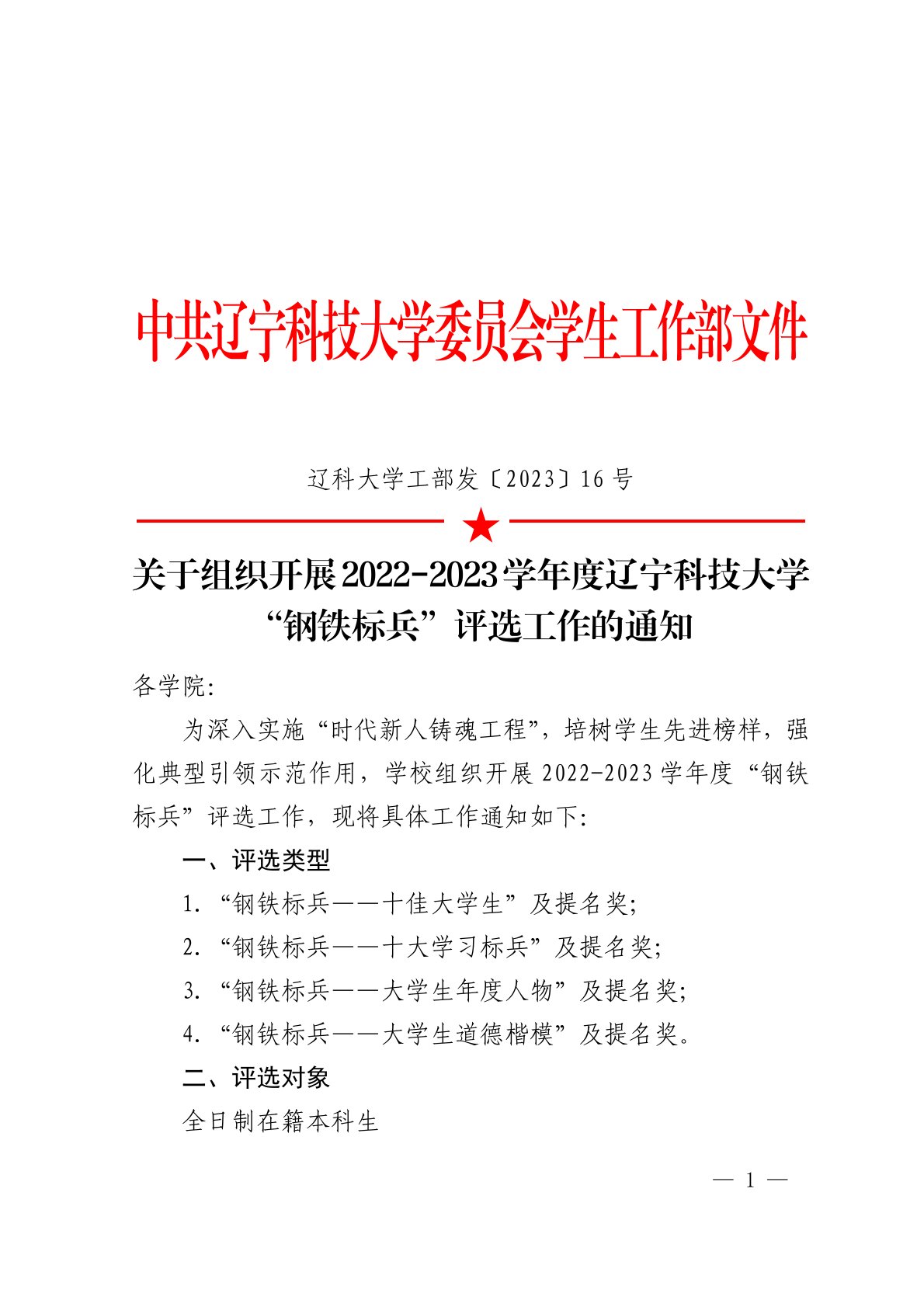 关于组织开展2022-2023学年度米兰电竞(中国)官方网站“钢铁标兵”评选工作的通知