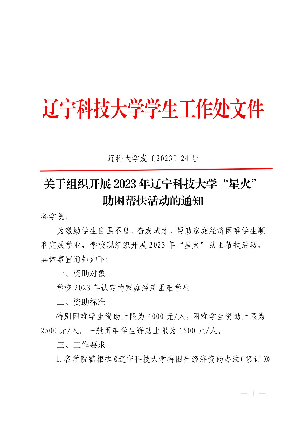 关于组织开展2023年米兰电竞(中国)官方网站“星火”助困帮扶活动的通知.pdf