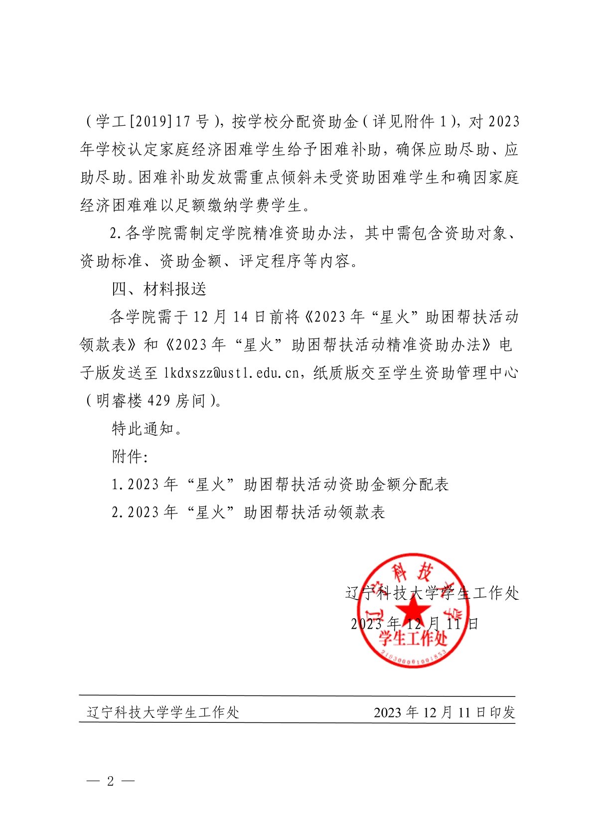 关于组织开展2023年米兰电竞(中国)官方网站“星火”助困帮扶活动的通知