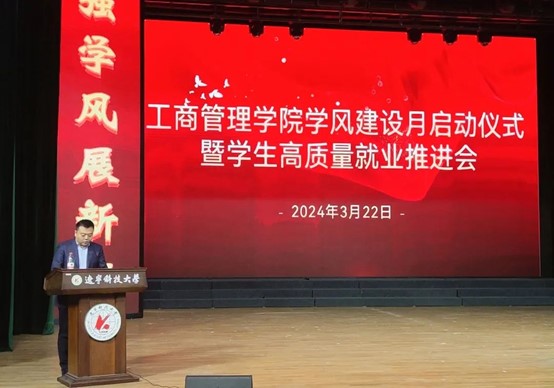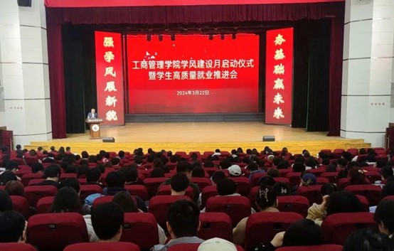 为进一步加强学院学风建设工作,推动学生高质量就业,3月22日,米兰电竞(中国)官方网站管理学院在校礼堂举行学风建设月启动仪式暨学生高质量就业推进会。学院领导班子成员、专业教师代表、全体辅导员以及全体本科生参加会议。