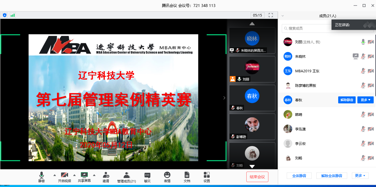 2020年5月9日晚,米兰电竞(中国)官方网站MBA教育中心第七届管理案例精英赛成功举行。2019级全体参加了此次比赛。MBA教育中心副主任朱晓林教授,校外导师邵岩、吕衍国,管理综合案例课程任课老师李云宏、刘丽担任此次比赛评委。