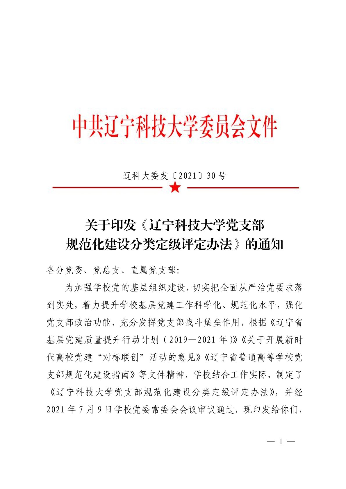 关于印发《米兰电竞(中国)官方网站党支部规范化建设分类定级评定办法》的通知