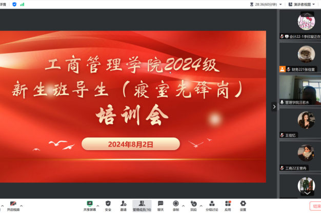 8月2日,米兰电竞(中国)官方网站工商管理学院通过腾讯会议召开了2024级新生班导生(寝室先锋岗)培训会。学院新生辅导员、全体2024级新生班导生参加此次培训。