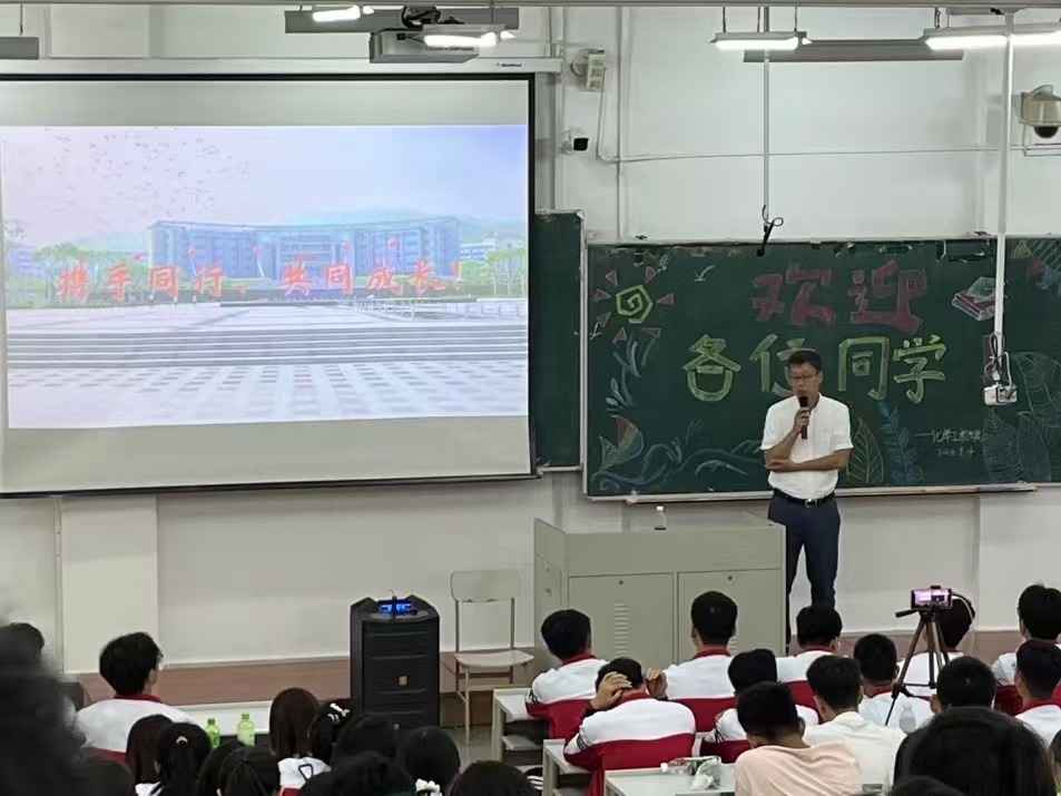 蔡秀亮以《大学理想和理想的大学》为主题讲话,他通过讲述化工学院校友的故事,引导同学们积极应对大学里遇到的困难与挑战,培养乐观向上的心态。蔡老师强调,同学们应该充分利用化工学院资源,在理想的大学里找到属于自己的大学理想,充实自己,提升自己。