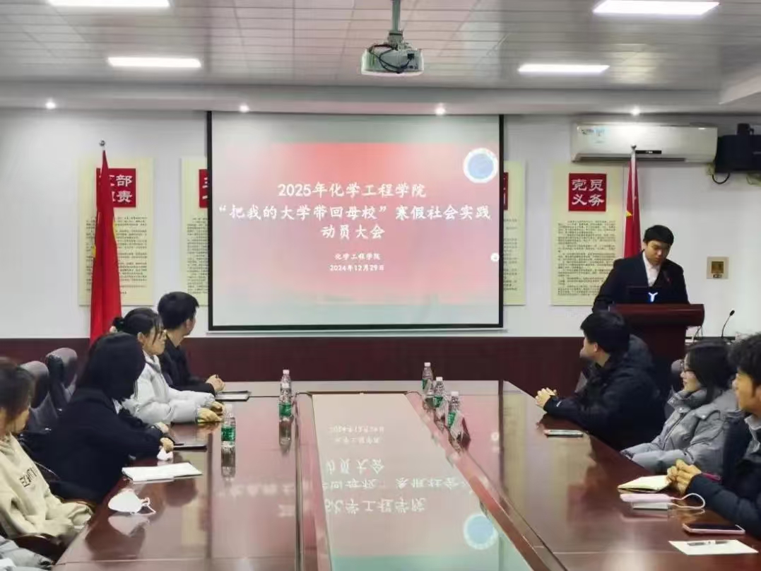 12月29日,化学工程学院在博观楼B325举行以“把我的大学带回母校”为主题的寒假社会实践启动会。本次活动旨在激励学子回访高中母校,展现学校风采,吸引优质生源报考我校。