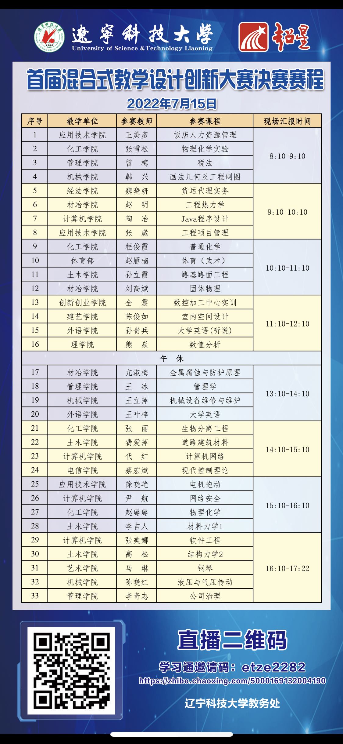 2. 决赛面向全校师生同步直播,要求2020、2021年入职教师全程观摩学习。