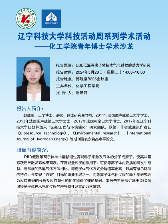 【科技活动周学术预告】DBD低温等离子体技术气化过程的动力学研究