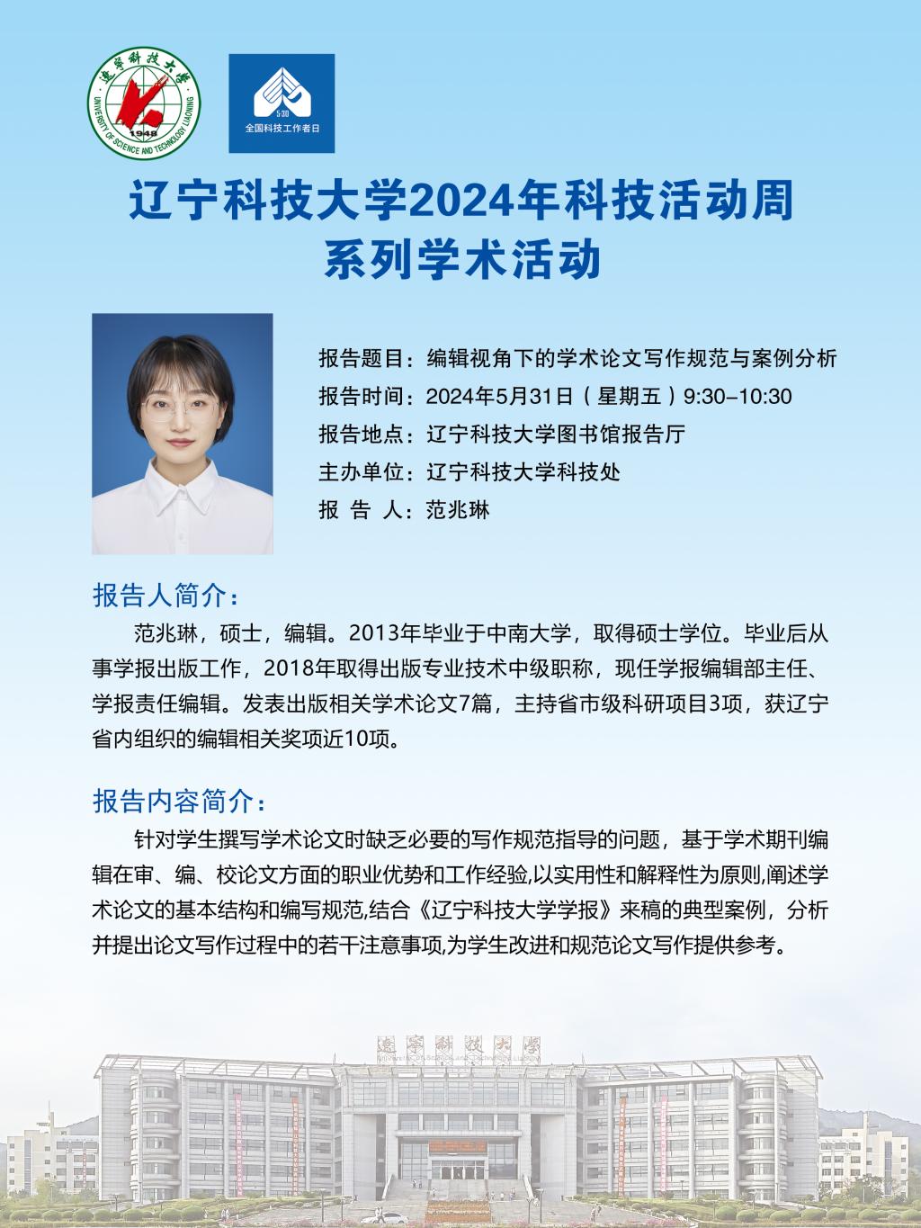 【科技活动周学术预告】编辑视角下的学术论文写作规范与案例分析