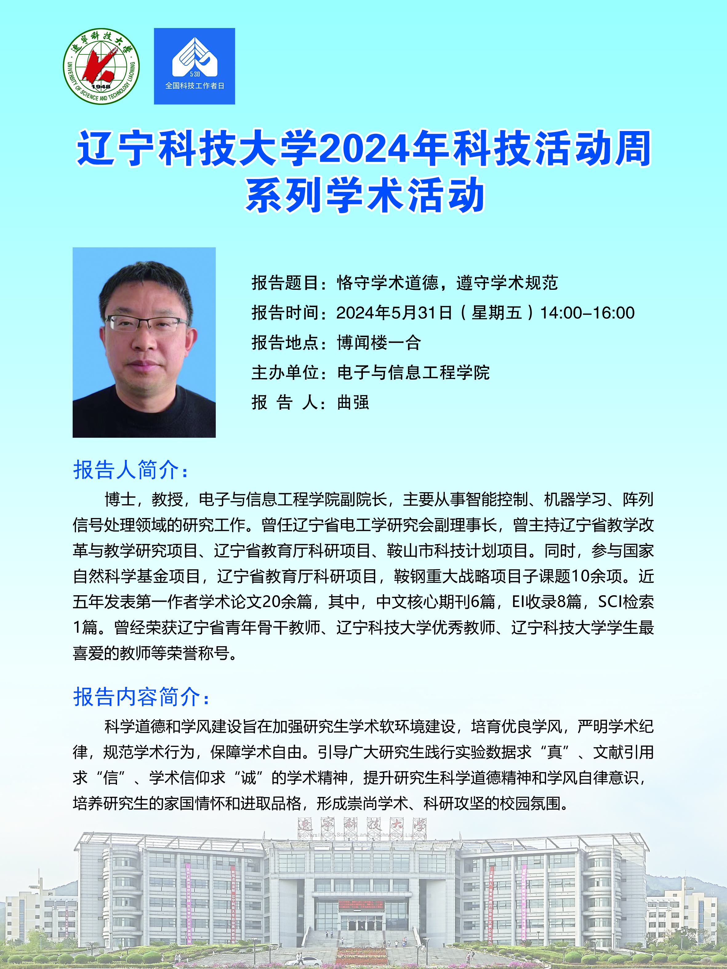 【科技活动周学术预告】恪守学术道德,遵守学术规范