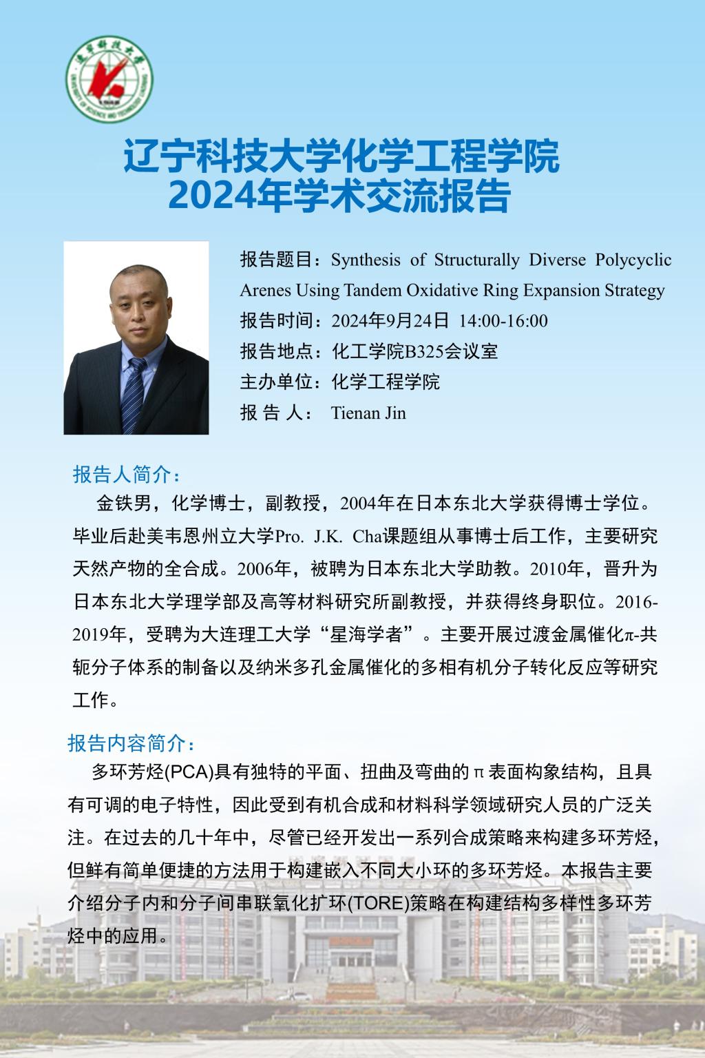 学术预告:Synthesis of Structurally Diverse Polycyclic Arenes Using Tandem Oxidative Ring Expansion Strategy