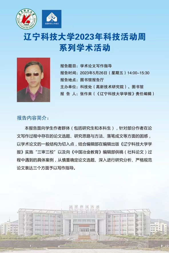 【科技活动周学术预告】学术论文写作指导