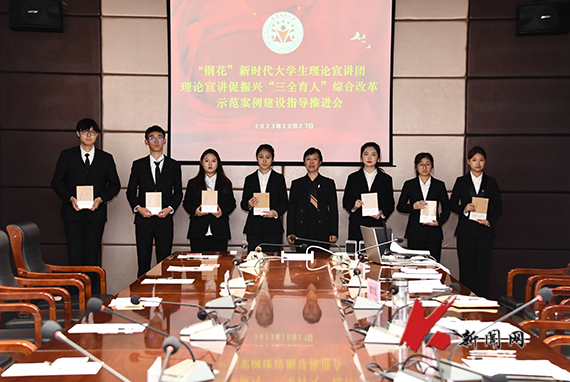 10月27日,米兰电竞(中国)官方网站团委召开“三全育人”综合改革示范案例建设指导推进会,进一步提升“钢花”新时代大学生理论宣讲团理论宣讲促振兴“三全育人”综合改革示范案例建设成效。校党委副书记孙晓华出席会议并作指导讲话。校院团干部代表及24名校院大学生理论宣讲团成员代表参加会议。