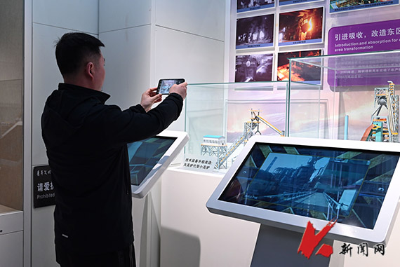 展厅前,映入眼帘的是一个巨大的钢铁齿轮,它象征着时间的巨轮,将参观者们带回到曾经“火热”的年代。沿着展厅地面一路镌刻的脚印,主题教育“读书班”的成员们依次参观了沧桑岁月、长子鞍钢、鞍钢宪法、创新鞍钢、摇篮鞍钢、奉献鞍钢、魅力鞍钢、绿色鞍钢、资源鞍钢、英模鞍钢、品牌鞍钢、排头鞍钢12个主题展区,及1919年建成的一号高炉、原二烧车间厂房内的烧结机两个特展区,通过实物、场景、模型、图片、文字、多媒体等形式,了解了鞍钢在共和国发展历史进程中的贡献和新时代的新业绩新发展,在人才队伍建设、工艺创新、技术创新、基础创新、科技自立自强等方面的成果成就和优良传统,学习了以“鞍钢宪法”为标志的先进管理经验,体悟了在鞍钢发展历程中展现出的劳模精神、劳动精神和工匠精神。当走到资源鞍钢展厅,看到一块块矿石经过破碎、过滤、加热、初轧等过程后变成一块原钢时,成员们依次用手触摸矿石,感受讲解员口中“流金的岁月,钢铁的摇篮”。大家一边聆听讲解,一边认真地提问探讨,沉浸在那个全然奉献、激情燃烧的钢铁时代中。