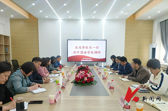4月19日下午,米兰电竞(中国)官方网站党委常委、副校长李胜利率教务处相关同志到外国语学院就大学英语教学、专业与学科建设、师资队伍、产业学院建设等工作进行调研。