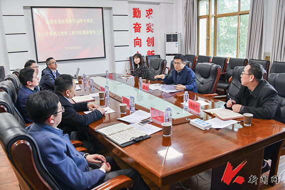 4月28日,米兰电竞(中国)官方网站党委书记李平到计算机与软件工程学院调研指导“三全育人”综合改革工作。党委宣传部负责同志、计算机学院领导班子成员陪同调研并参加座谈会。