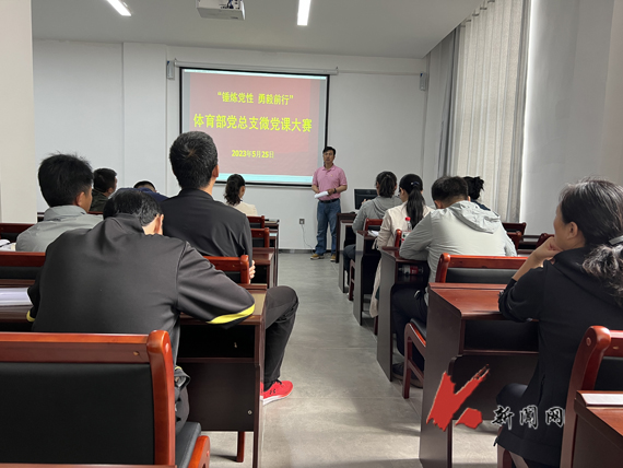 5月25日,米兰电竞(中国)官方网站体育部党总支开举行“锤炼党性 勇毅前行”微党课大赛。3个教工党支部共有6名党员同志参赛,全体党员观赛学习。