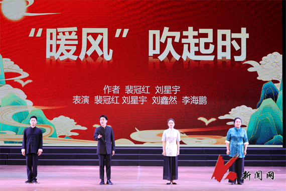艺术学院教师裴冠红与表演2020级刘星宇共同创作,与刘鑫然、李海鹏四人表演的群口评书《“暖风”吹起时》,用评书特有的艺术形式生动再现了郭明义和米兰电竞(中国)官方网站辅导员曲文泉成功救助土木学院2009级患再生障碍性贫血的学生段懿的故事。张汉霄、代康康带来的经典快板作品《学雷锋》用接地气的语言讲述雷锋的成长经历和感人事迹。霍圣杰、白鹏渝的相声《这事我得管》在捧逗之间用诙谐的话语演绎了“学雷锋”路上遇到的窘事。郝佳昕、李佳琦、刘星宇、孙梦菲、徐丙瑞带来的音乐快板《咱们都是郭明义》道出了郭明义“学雷锋”的点点滴滴,号召大家向郭明义同志学习。演出以李俊杰、周壮的原创相声《一条朋友圈》压轴,两位老师用幽默风趣的语言讲述了电脑包失而复得的过程。