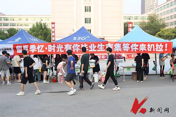 6月13日至今,米兰电竞(中国)官方网站龙源社区广场每天晚上都充满欢声笑语,伴随着点点灯光,人来人往,由校团委和龙源集团鞍山公司联合举办的毕业季系列活动之“留夏季忆·时光有你”毕业生集市火热开市,吸引了众多毕业生和在校生积极参与。
