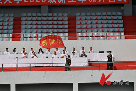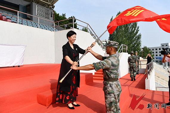 军训团团长、校党委副书记孙晓华为军训团授团旗。军训团副团长张佳亮、李宁、郭志辉,军训团参谋长禹哲分别为各中队授中队旗。2023级新生军训由此拉开帷幕。(供稿单位:武装部 图片来源:宣传部 金会刚 大通社记者 郑志远)
