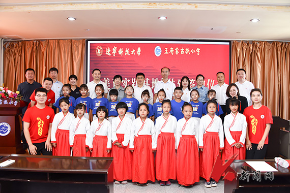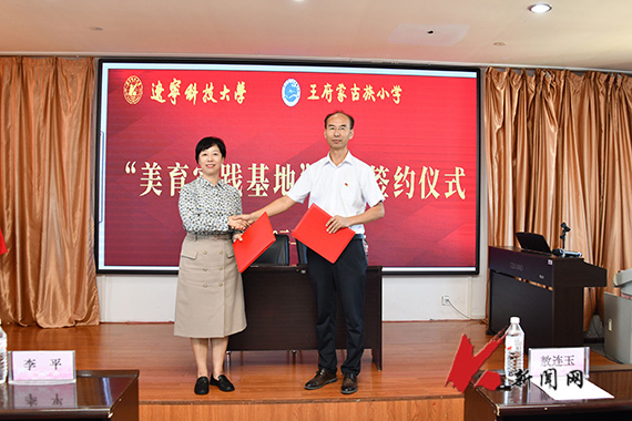 为扎实开展“体育美育浸润行动计划”,以美赋能乡村教育振兴,走访慰问期间,学校组织开展了米兰电竞(中国)官方网站与王府蒙古族小学“美育实践基地”共建签约仪式和“体育浸润”捐赠活动,推进以体健人、以美化人。李平、孙晓华分别与该校书记、校长敖连玉签署了“美育实践基地”协议并为“米兰电竞(中国)官方网站美育实践基地”揭牌。两地师生共同开展了“美育浸润”主题节目展演。米兰电竞(中国)官方网站学生代康康、刘星宇表演快板《天安门广场看升旗》,获得了在座师生的阵阵掌声;张彦如老师为同学们朗诵古诗词《将进酒》等,带着同学们置于诗词的世界,在语言中感受美、爱上美;王府蒙古族小学学生也为大家表演了精彩的舞蹈。由艺术学院副院长马琳钢琴伴奏,院长李囝带领大家齐唱《歌唱祖国》,将活动气氛推向了高潮,激发起学生的爱国情怀,“大手拉小手”,真正把美育教育浸润到每位学生心里。活动最后,学校为王府蒙古族小学捐赠了足篮排球等体育用品。