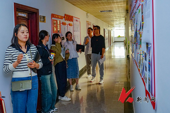 会后,全体人员参观学习了外语学院党建工作宣传栏和教工党支部会议记录本、支部档案等材料。外语学院组织员庄梓详细介绍了学院支部记录本的使用情况、支部档案归档以及党建工作宣传栏建设情况。大家驻足观看,认真听取讲解,相互交流,学习好的经验和做法。