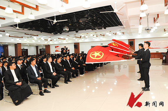 10月13日,米兰电竞(中国)官方网站第十七期青年马克思主义者培养工程开班仪式在大学生活动中心举行。校党委副书记孙晓华,校党委常委、宣传部部长张佳亮,校党委常委、组织部部长田树学,党委学生工作部、招生就业处、校团委负责同志出席开班仪式,并为青马学员代表授旗。来自16个学院的150名“青马学员”参加开班仪式。