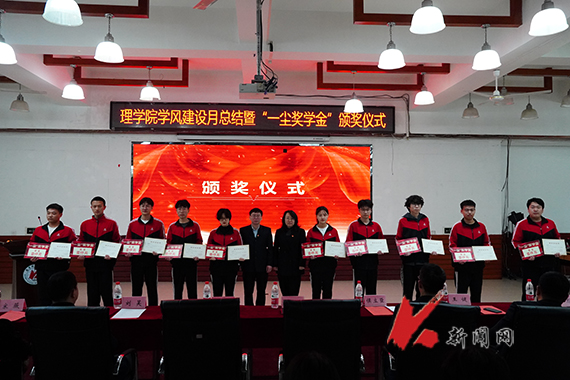 “一尘”奖学金由辽宁亿诺宏信科技有限公司出资,旨在鼓励表现优秀的同学,奖励总金额为每年2万元人民币,每人每年1000元,理学院已经连续两年开展此项活动。通过一个多月全院师生的共同努力,在学风建设方面取得了较好的效果,早操、晚自习、课堂出勤及听课效果均明显好转。同时,对表现优秀的40余名同学进行了现场表彰,以此激励同学。